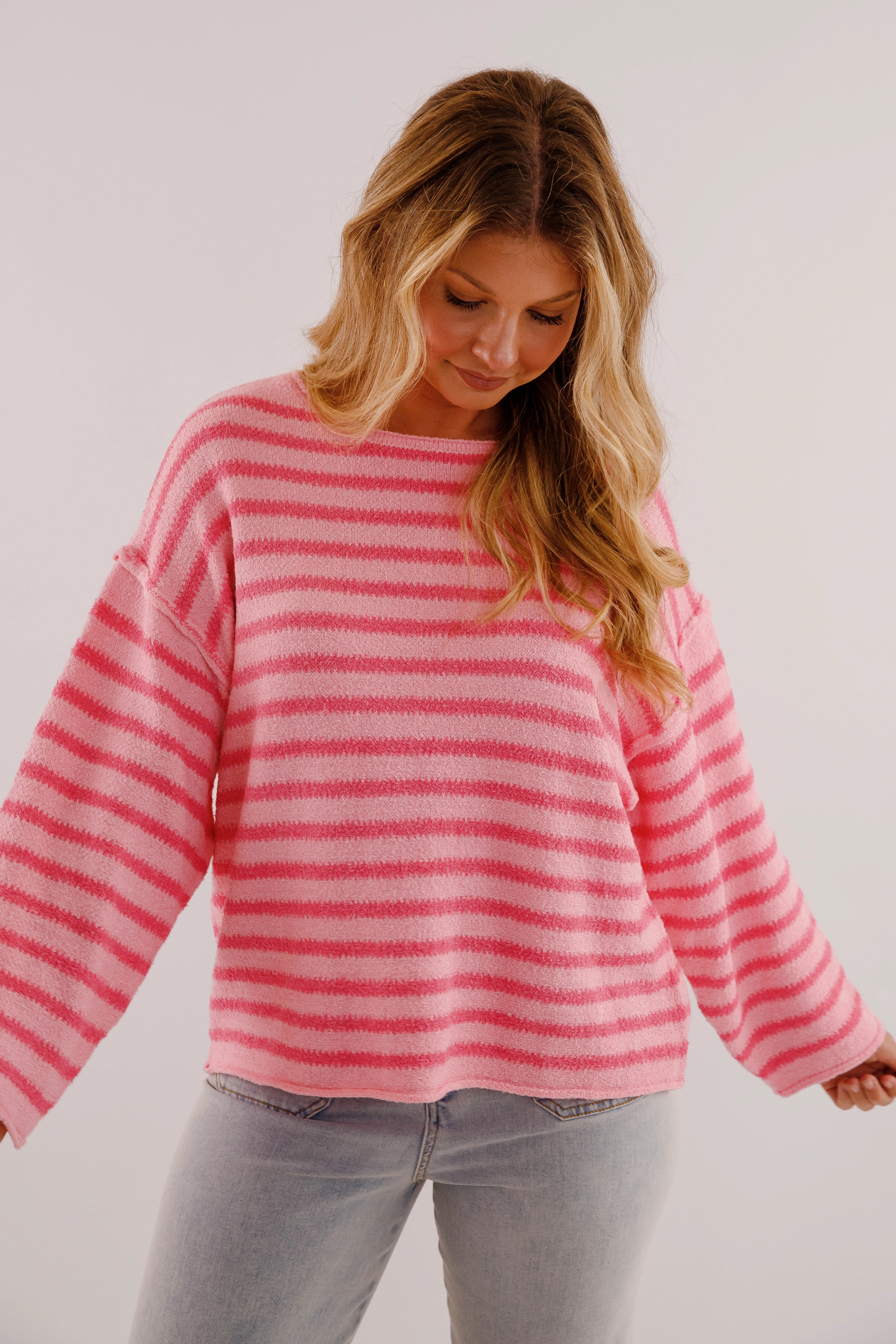 Elevate your wardrobe with the Better Perspective Sweater, featuring a stylish striped textured knit that adds depth to your look. Its relaxed fit with dropped shoulders and a round neckline offers both comfort and effortless chic. Exposed seam detailing gives this sweater a modern edge, making it a versatile piece for layering or wearing on its own. Perfect for cozy days with a fashion-forward touch. For an oversized look, we recommend ordering your usual size. For a more fitted look, we recommend ordering a size down.