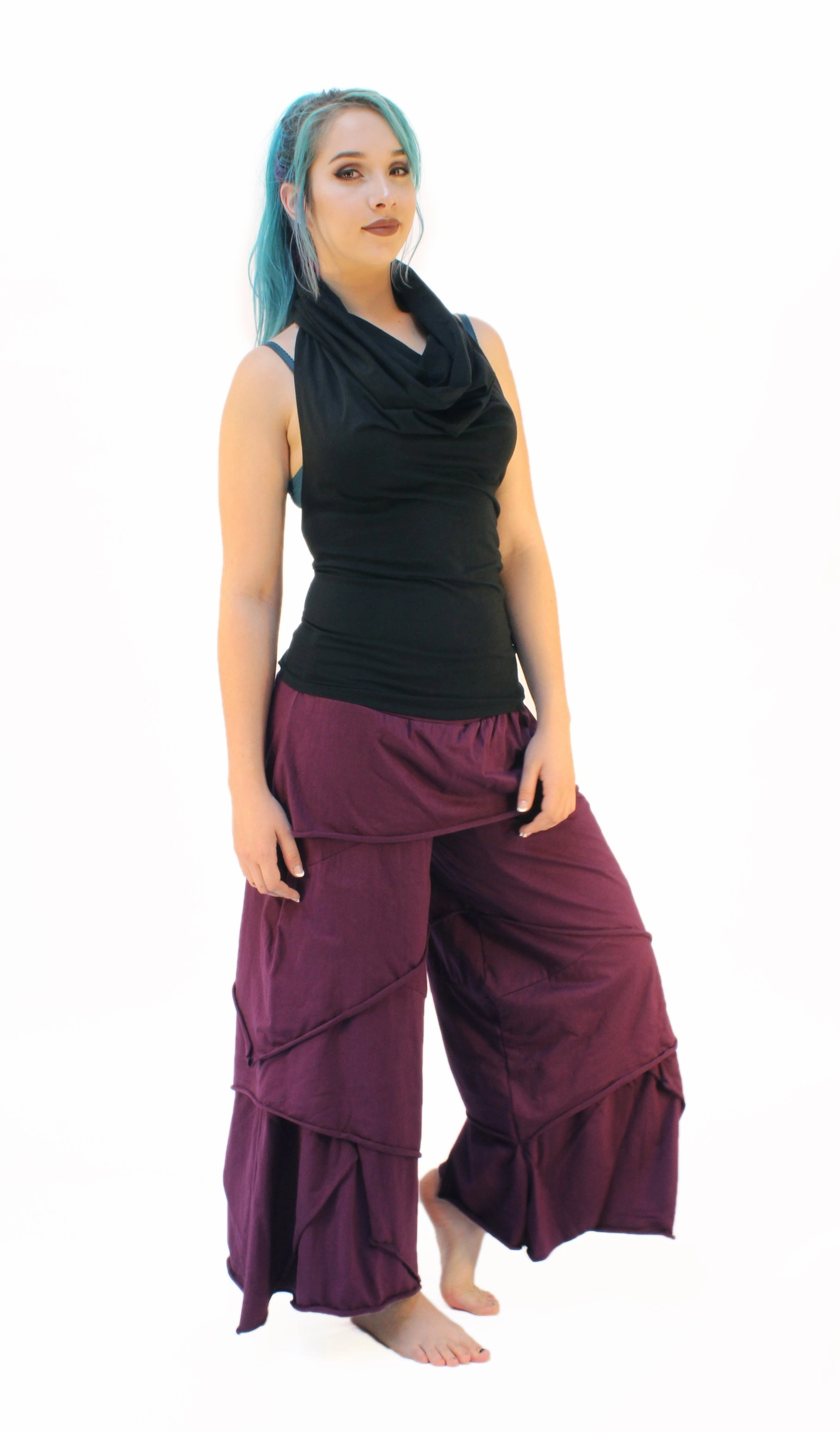 The layered pants of your dreams.. So much fun, so comfortable, and yes so many layers in one piece. These pants are heavy and have a lot of stretch so please go down a size. They are made with a sturdy cotton Lycra so they add some weight. That said they are breathable as they are mostly cotton knit, so they are fun to dance in.